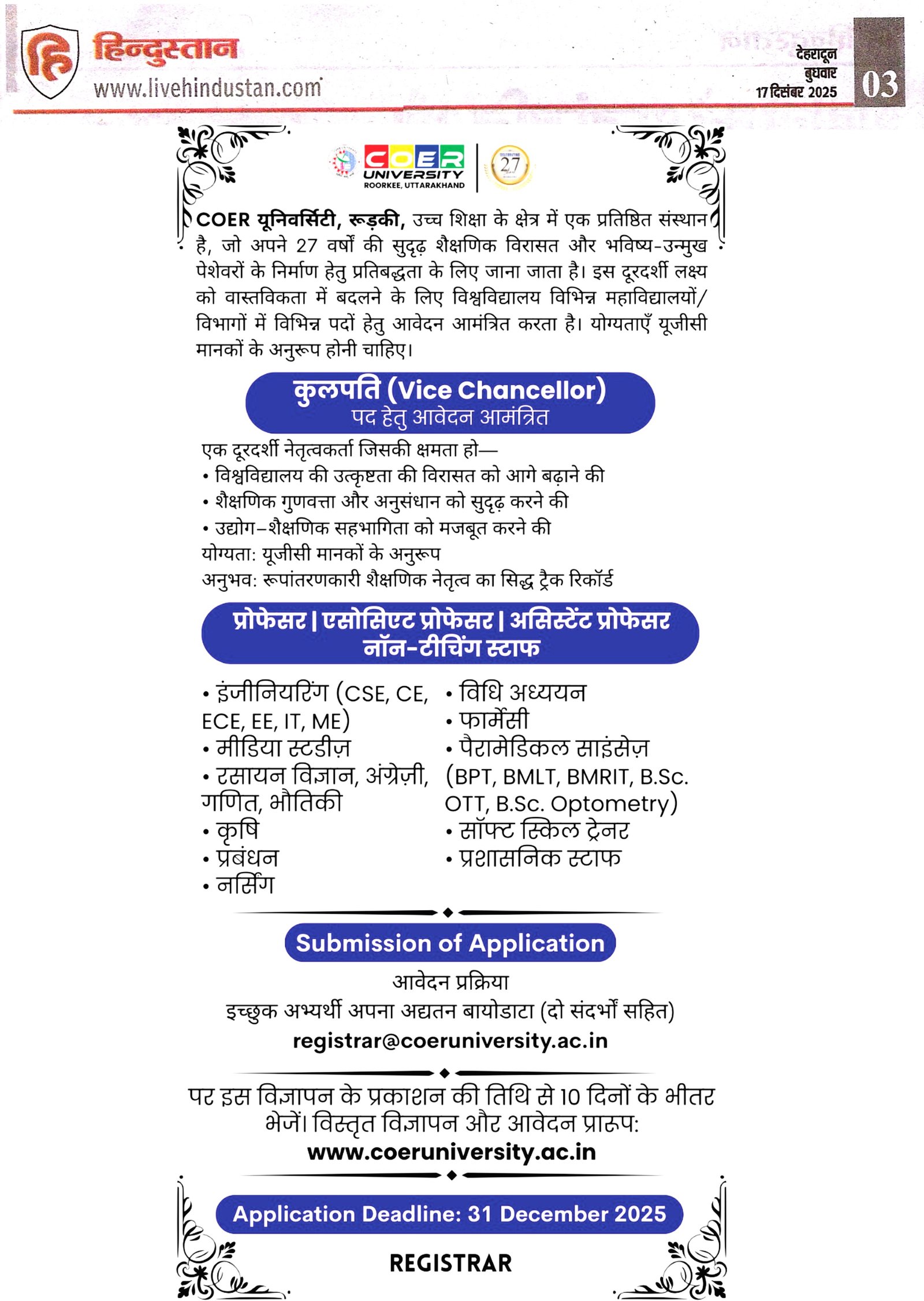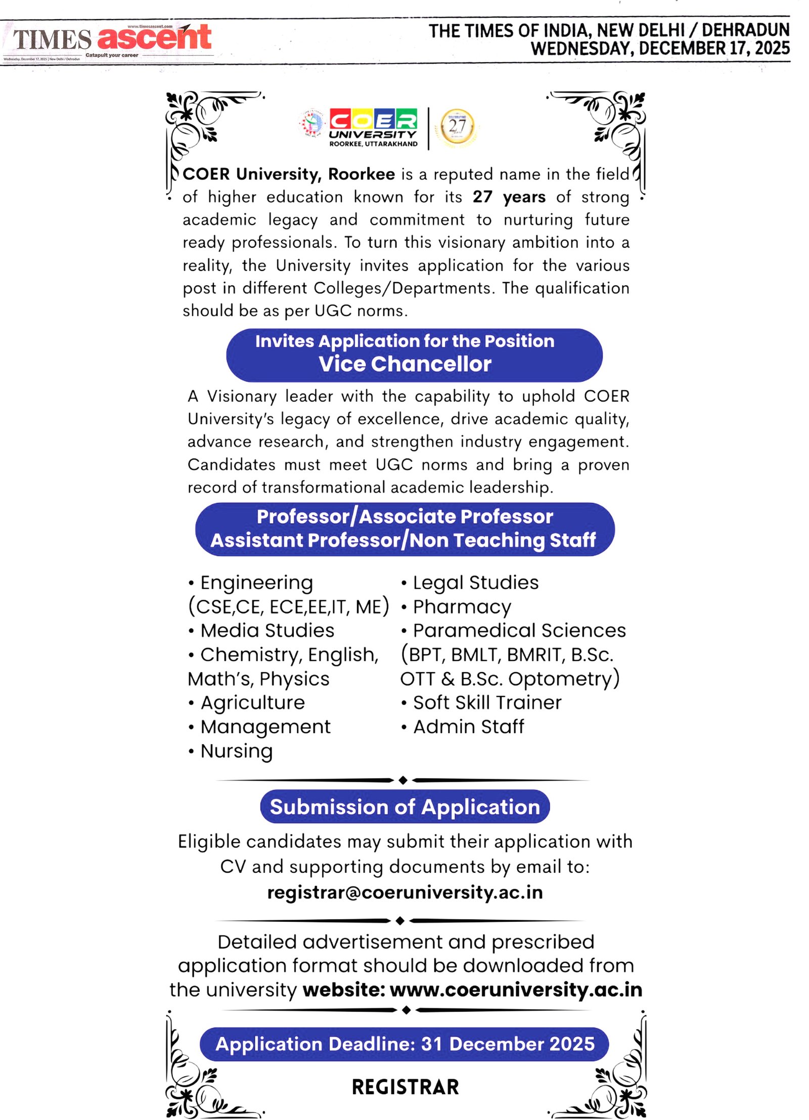 - Teaching: As a member of the Faculty, you will be responsible for various day-to-day tasks related to teaching and research in the field of Agriculture.